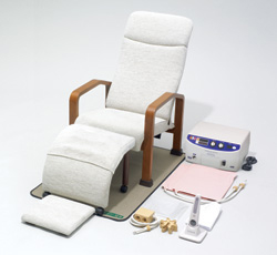 「トランセイバー健寿9000型」は、背部に温熱マットにより、温熱療法による健康効果を追求。下半身を温めることで腰湯の効果を生み出し、電位療法との組合せでさらなる健康づくりを目指します。温熱マットには、遠赤外線ヒーターの素材の一種であるカーボン発熱体を採用。全面を均一に快適に温める線面発熱体は、安全性と耐久性にも優れています。